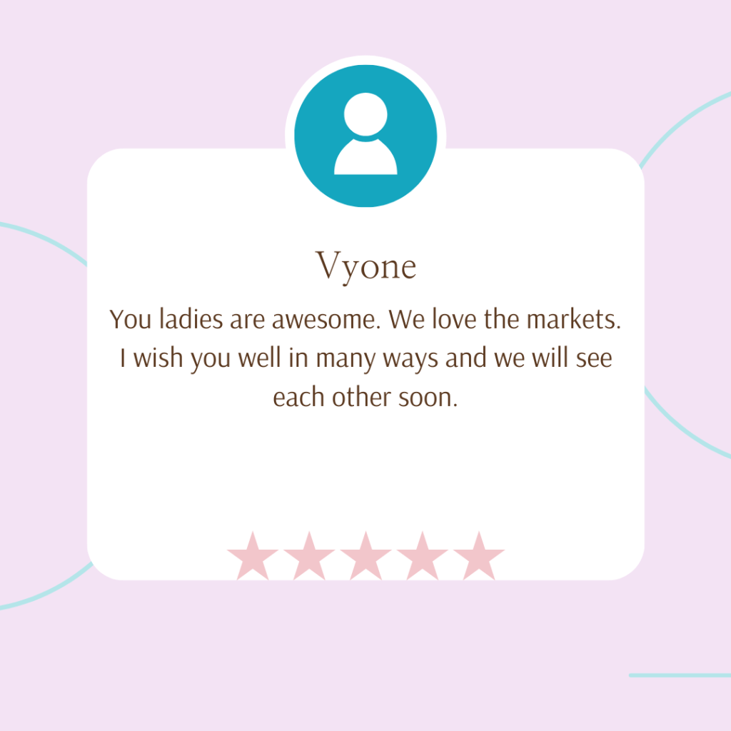 We open our platform for female-owned businesses. Whether it is a startup or a new adventure that you are starting to create extra income, we allow females from all walks of life to participate in our market days